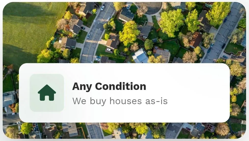 We buy houses in any condition. No painting, fixing, or cleaning required. Sell as-is and move on.